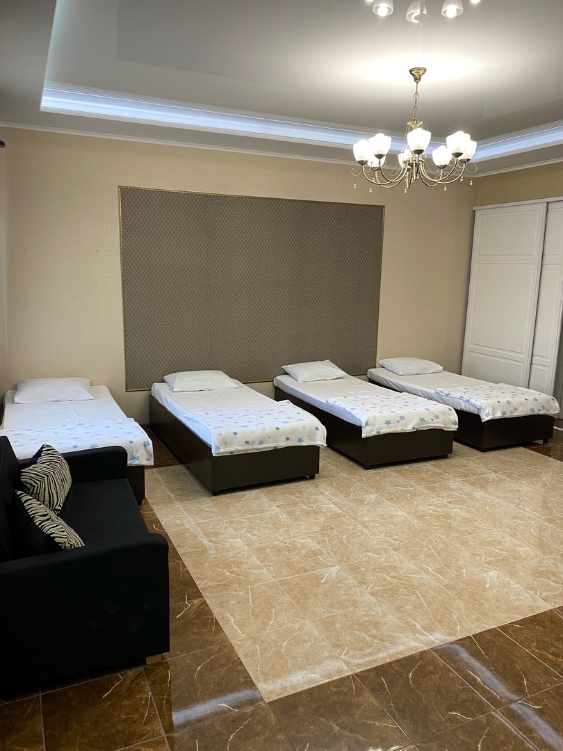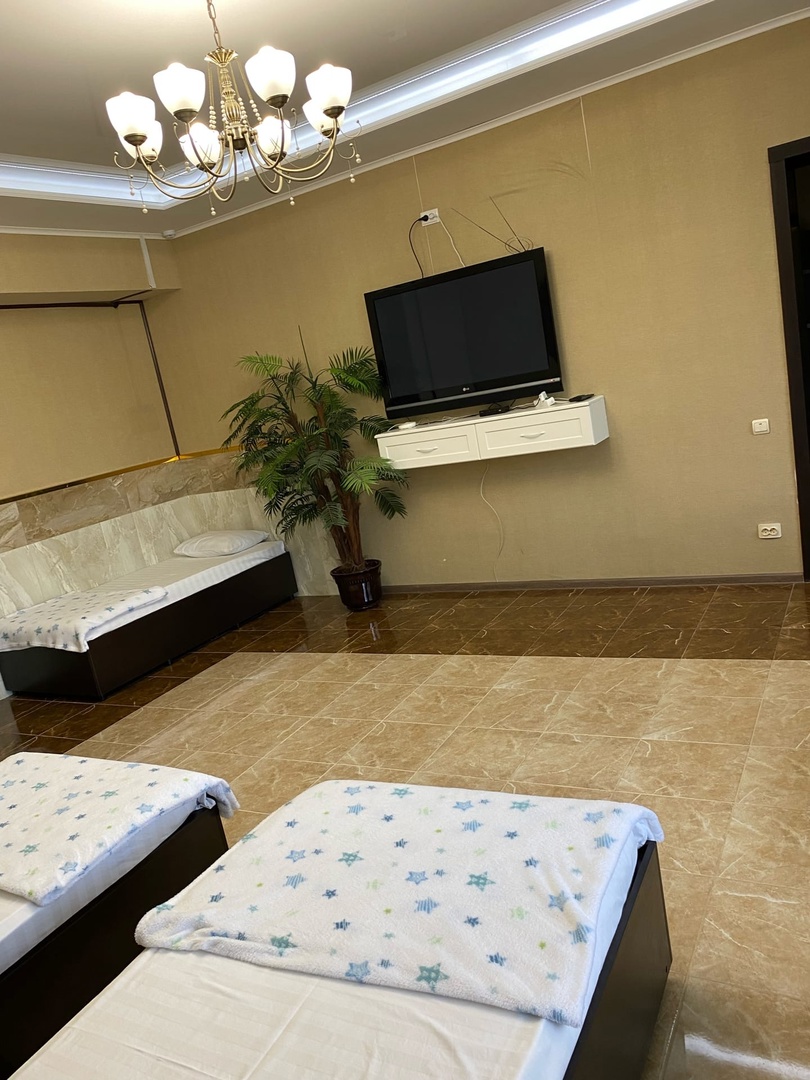 Просторные двухкомнатные апартаменты со своим отдельным выходом на улицу,пять спальных мест,большая кухня с необходимой посудой, ЖК телевизор,Wi-Fi,набор полотенец, халат, одноразовые тапочки, средства личной гигиены.